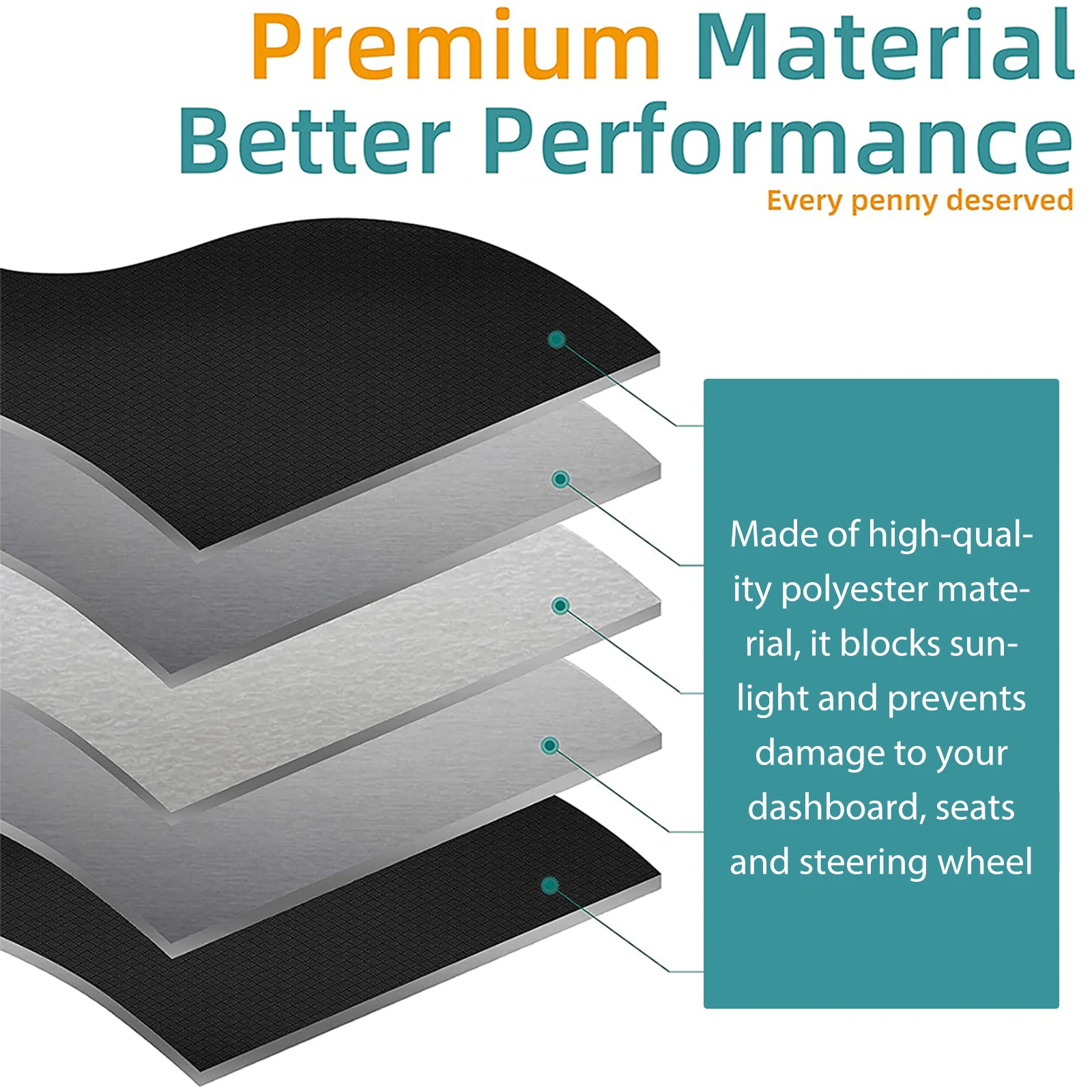 [Premium Polyester] This sunshade is made of high quality polyester, effectively blocking 98% of harmful sunlight and preventing damage to the dashboard, seats and steering wheel. It also ensures that the inside of your car stays cool