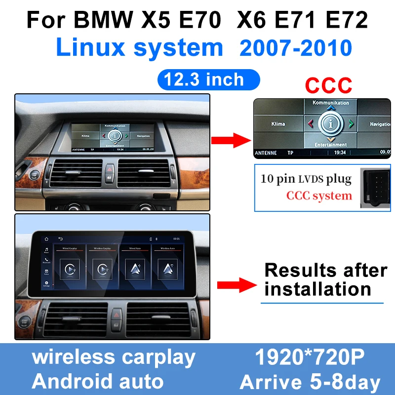 The product supports BMW X5 E70 X6 E71 E72 CCC CIC for 2007-2013 years